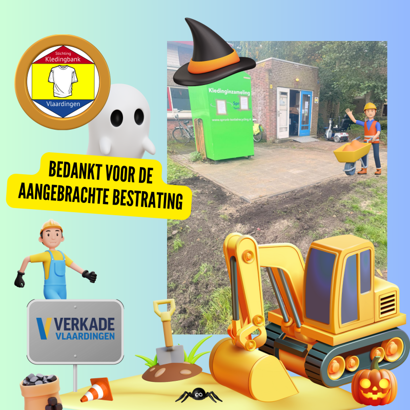Vlaardingen - 21 oktober 2024. Het bedrijf Verkade Vlaardingen heeft ons weer ontzettend geholpen met een puik stukje bestrating voor de ingang van de Kledingbank. Hierdoor kan de 2e kledingcontainer geplaatst worden en is er ook nog ruimte om je fiets neer te zetten. Nogmaals bedankt voor de snelle service.